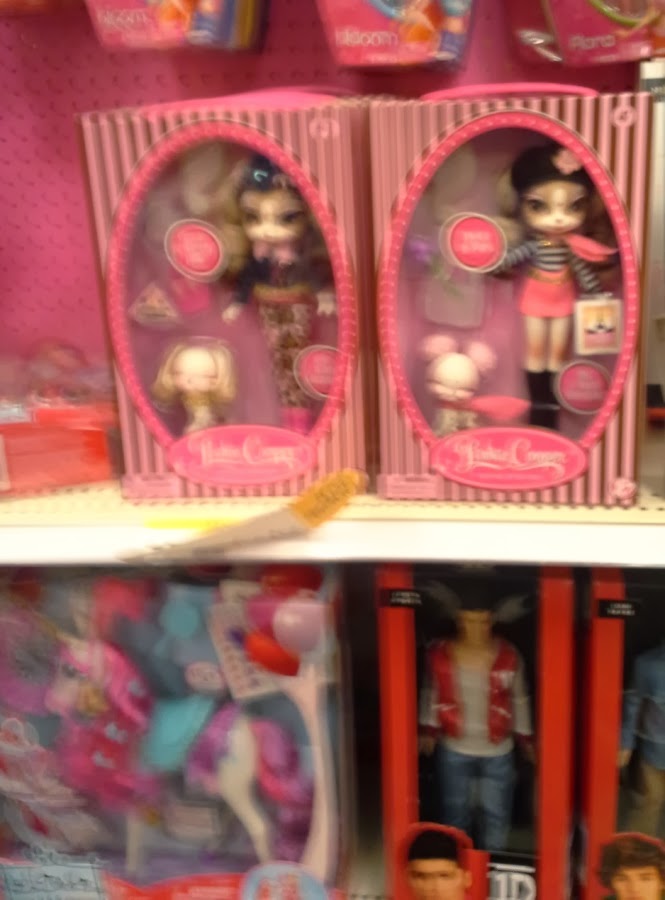 Honestly, I didn't see much to interest me at all. Of course, I'm not interested in Monster High or Frozen, and I don't have little girl daughters anymore, so those things might be big contributors. Monster High, Frozen and Target's Our Generation line were the winners as far as attention paid to display, with Disney princesses in general coming in next, so if you're interested in any of those dolls, there was lots to choose from. I expect Ever After High to have its own section next Christmas if sales in 2014 go well overall. Otherwise, everything at this Target just seemed kind of packed in here and there. Even Barbie seems to be a mish-mash of themes (Fashion! Sisters! Life in the Dreamhouse!) and nothing stood out as special. Plus as I said above, the quality on some of these lines was a bit disturbing as well. Meh.